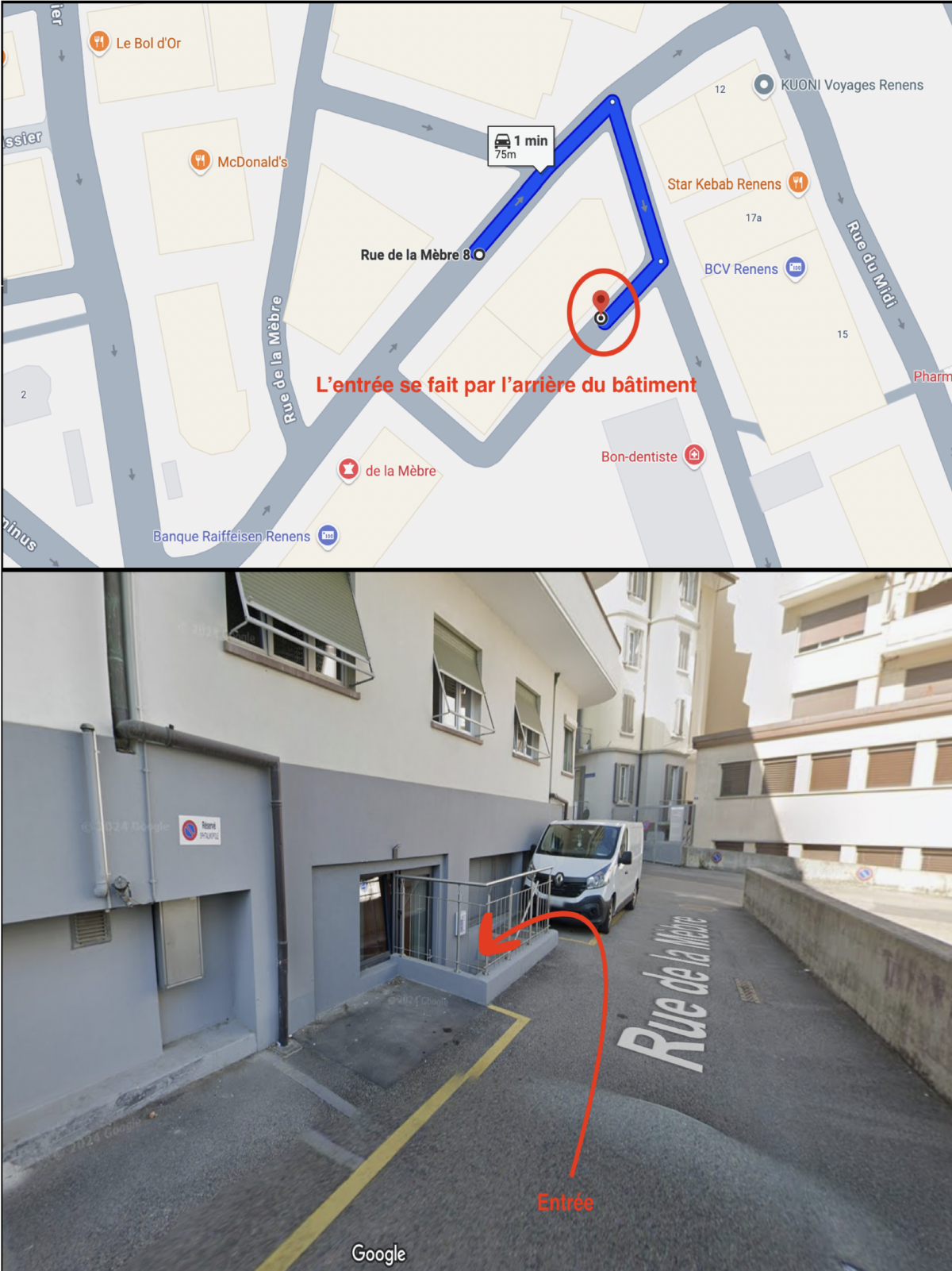 - en bus : arrêt de bus - Renens VD 14 Avril - 3mn à pied